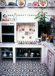 I have always loved the Moroccan look – those Moorish arches, heavy upholstery fabric, rich color schemes, ornate lanterns, and of course, the tile work – both the ceramic and mosaic tiles are amazing. Carocim founder Christian Berthéas feels the same way. While spending some time in Marrakech in the early 1980s, he became enamored with the tile work he saw everywhere, and when he returned to France in 1986, he started Carocim. Here are some images from their latest catalog (the first one is not a kitchen, I know, but I couldn’t resist it, it is just too gorgeous!).