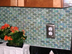 These oval iridescent glass tiles from mosaic artist Susan Jablon are simply stunning. All her designs are fabulous, but this is one of my favorites. The color, the shape, the glow – just perfect. I also love her background – a success story many of us dream of for ourselves. After spending many years in the corporate world, she decided (in the late 90s) to take a chance and follow her heart and return to art. She opened her tile business in 2000 and it was an instant success. She has since been featured on shows like Hell’s Kitchen and Trading Spaces, and needless to say, business is booming.