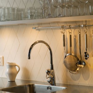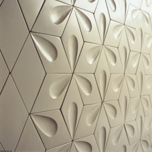 The “drop” tiles from Swedish design team Jenny Oldsjö and Ragnar Hultgren are white, understated and very Scandinavian-looking. They are made from an interesting material I had never heard of before: soft concrete. It is made by adding a little bit of polymer to the concrete, making it softer and more elastic. I love concrete (my sister-in-law has a gorgeous concrete kitchen counter top in her house which I just adore) but sometimes it feels a little bit cold and hard for indoor use. Well, that just got solved here. The polymer not only makes it softer, it also makes it warmer and quieter. It can be used as a backsplash, kitchen counter, bathroom wall, floor, etc. – and looks gorgeous everywhere.